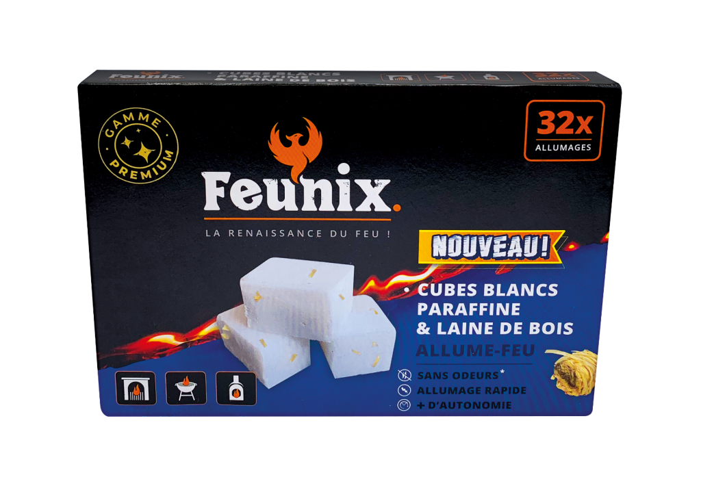 Un cube blanc à base de paraffine de grande qualité avec de la laine de bois incorporée.